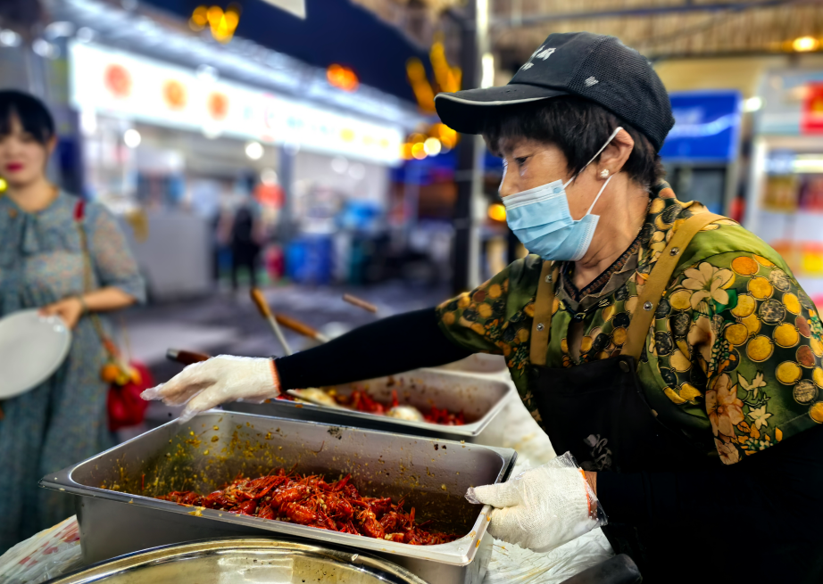 活动开幕当晚,叮叮集市烟火气十足,香辣、卤煮、鱼香、蒜蓉……现场油光四溢、鲜香扑鼻、色泽诱人的各种口味小龙虾应有尽有,游客共赴这场美食之约,争相品尝各种特色美食。据了解,当晚叮叮集市内10家商户备小龙虾1000余斤。