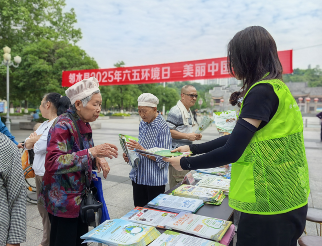 “阿姨,您知道废旧电池属于什么垃圾吗?”在广安市邻水县黄桷树公园的宣传展台前,一名身穿绿色环保马甲的志愿者微笑着向路过的市民提问。6月5日上午9点,一场以“美丽中国我先行”为主题的大型环境日宣传活动在此拉开帷幕,吸引了众多市民驻足参与。