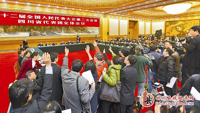 3月6日是出席十二届全国人大二次会议的四川代表团开放日。下午,四川代表团在人民大会堂东大厅举行第三次全体会议,继续审议政府工作报告,审查计划报告和预算报告。