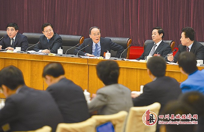 3月11日上午,十二届全国人大二次会议四川代表团在驻地举行第五次全体会议。中共中央政治局常委、中央纪委书记王岐山出席会议,亲切看望四川代表,与代表们一同审议最高人民法院和最高人民检察院工作报告。