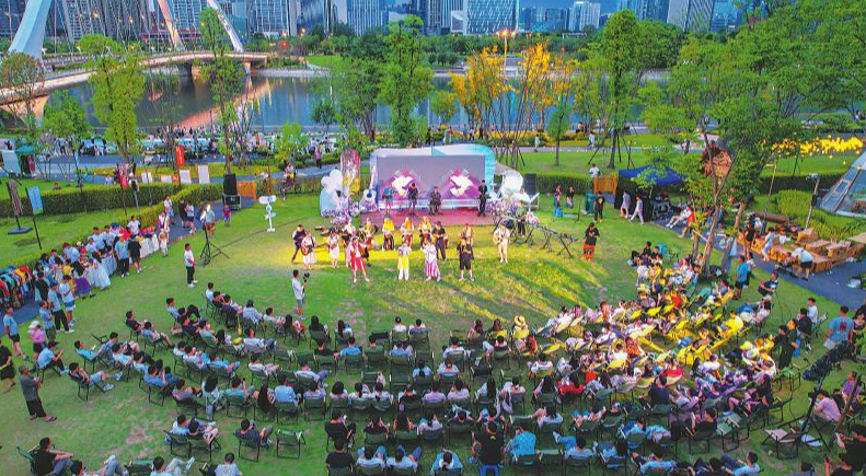 6月21日,成都市锦江区,市民在交子VC露营基地品美食、玩音乐、赏夜景,乐享休闲夜生活。 文瑞 摄(C视觉)