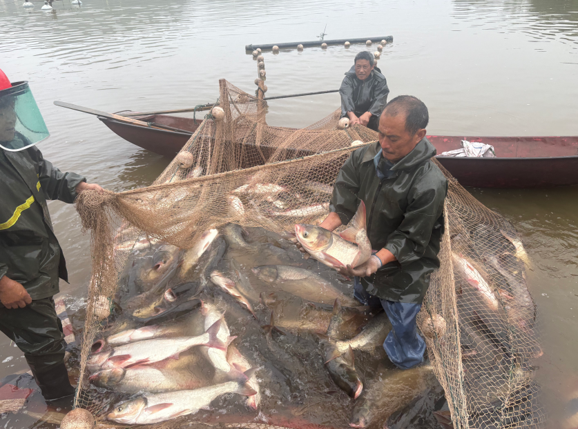 专业捕捞队捕捞鲢鱼。 天马乡供图