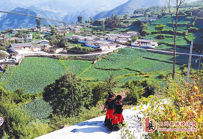 喜德县两河镇洛呷村,100多座彝家新寨山坳里梯次铺开,阳光下煞是惹眼,水泥路穿村而上,路旁700亩花椒正探出果实。