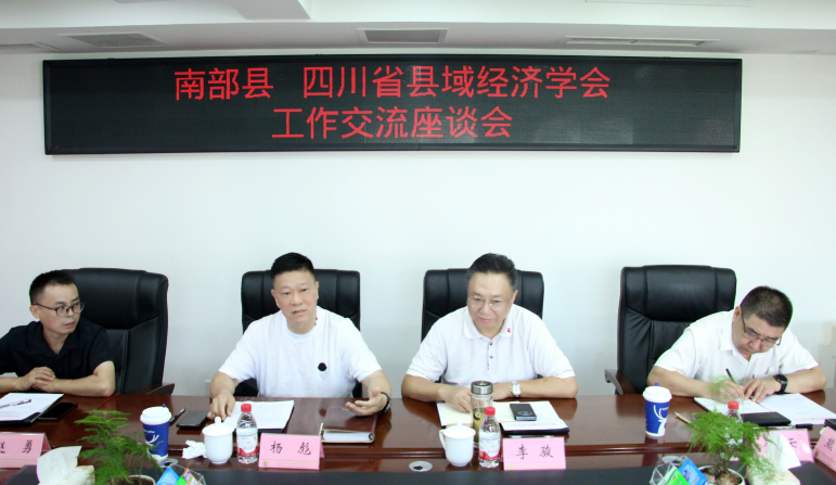 7月16日上午,学会与南部县就“建设先行区,争创百强县”目标,推进县域经济高质量发展在成都市举行工作交流座谈。学会副会长兼秘书长、当代县域经济杂志社社长杨彪主持会议。学会特邀副会长、特色产业发展工作委员会理事长、省经济合作局原机关党委书记李骏,南部县委副书记高喜伟,南部县政府常务副县长毛果出席座谈会。