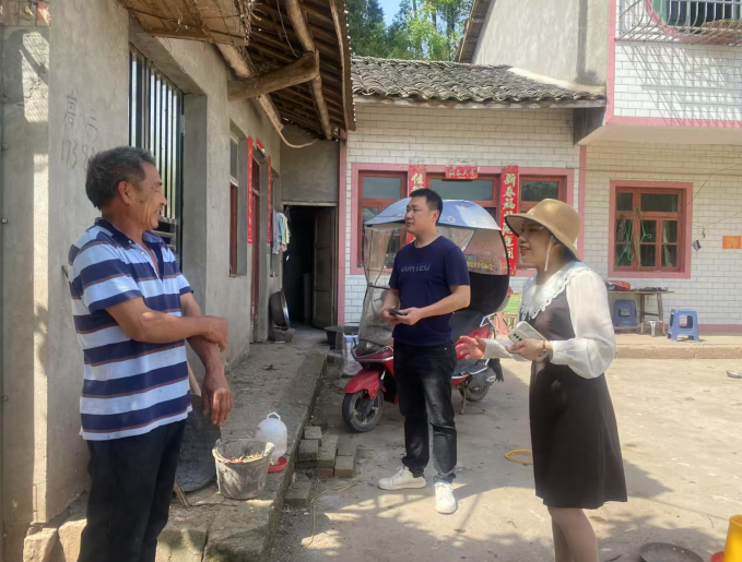 县人大代表邓林(右)走村入户倾听一线声音。安岳人大 供图