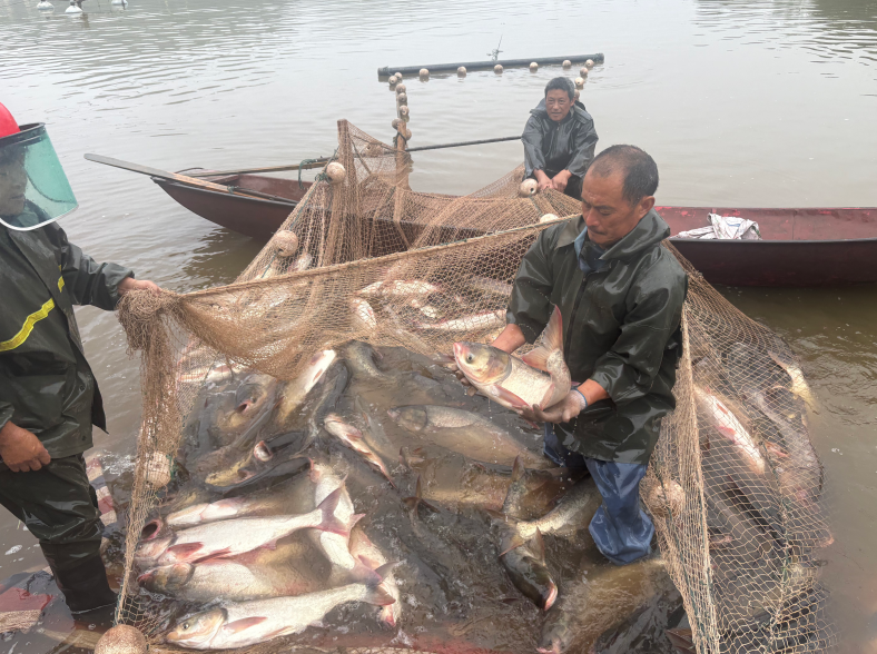专业捕捞队捕捞鲢鱼。天马乡 供图