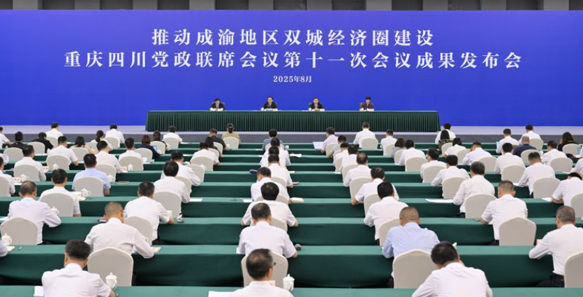 发布会前,两省市召开座谈会分别通报了2025年上半年经济社会发展情况,听取了《〈成渝地区双城经济圈建设规划纲要〉实施情况总结报告》情况、《成渝地区双城经济圈建设“十五五”建议实施方案》情况、重庆成都双核联动联建推进情况的汇报,审议了《川渝共建国际消费目的地行动计划(2025—2027年)》《关于支持保障成渝金融法院改革发展的方案》《重庆四川推动成渝地区双城经济圈建设工作机制》。