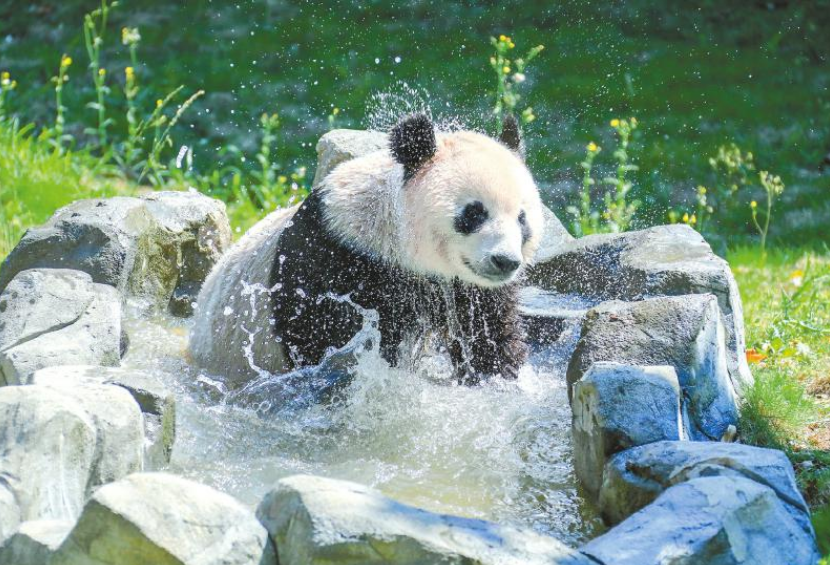 华蓥山大熊猫苑的大熊猫在戏水。 邱海鹰 摄