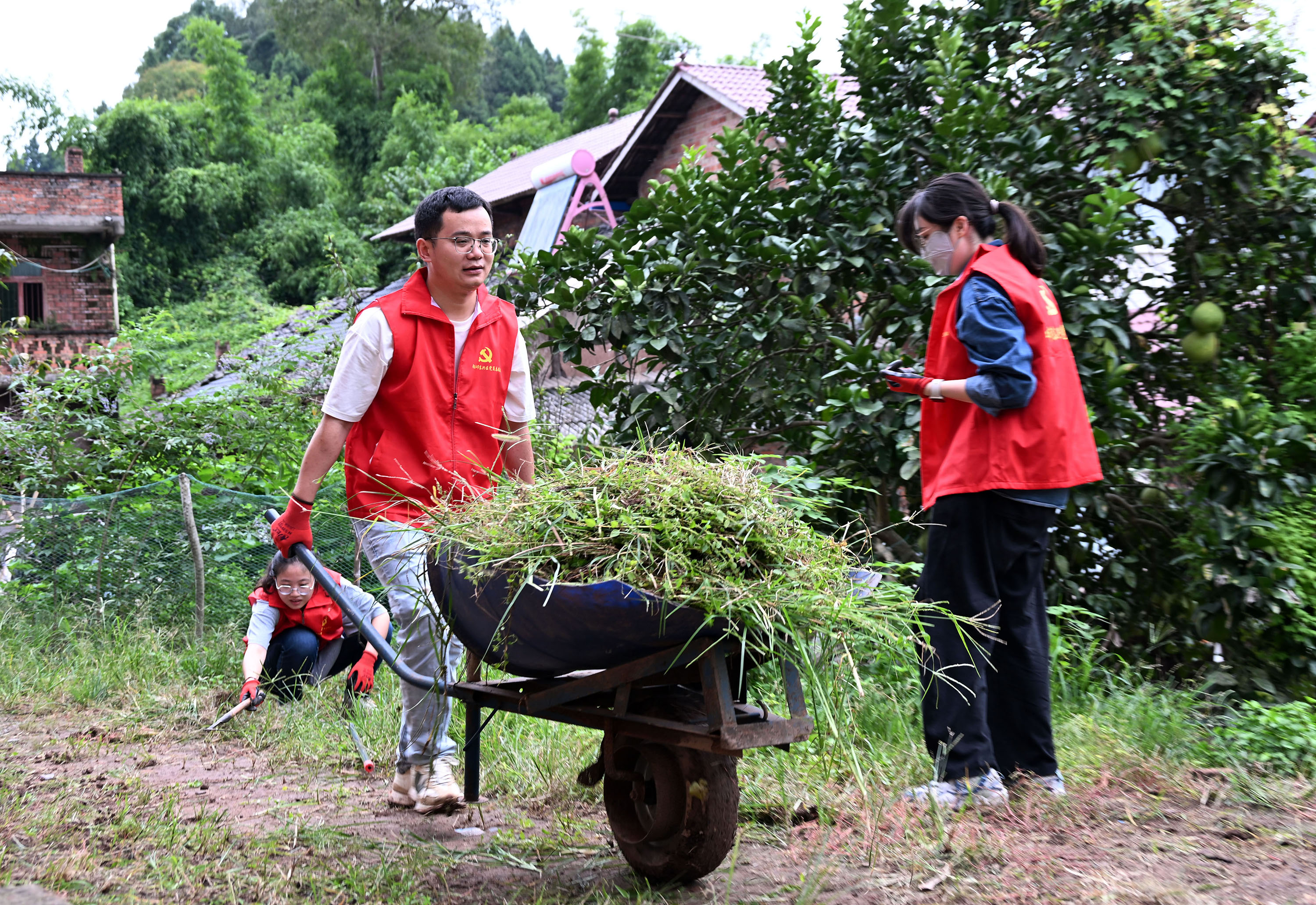 9月20日,内江市东兴区顺河镇凤兴村,党员志愿者正在清杂去乱