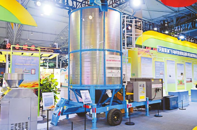 “天府菜油”行动科技创新团队项目成果——移动式谷物(油菜籽)应急干燥机、农用螺旋榨油机。
