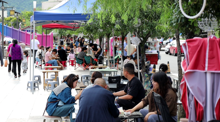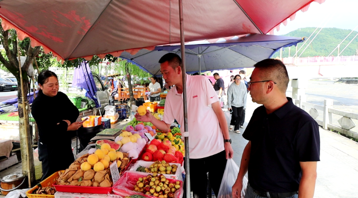 初秋傍晚时分,赛场旁边的滨江河堤丝丝凉意沁人心脾,此处潮汐夜市的100多个夜间摊点经过整合提升后,形成了规模化、特色化的消费集聚区,琳琅满目的平武本地生态农产品、鲜甜多汁的当季瓜果,搭配上香气扑鼻的烤玉米、凉粉凉虾等小吃和饮品,引得众多前来观赛的市民、客场球迷和游客驻足品尝。