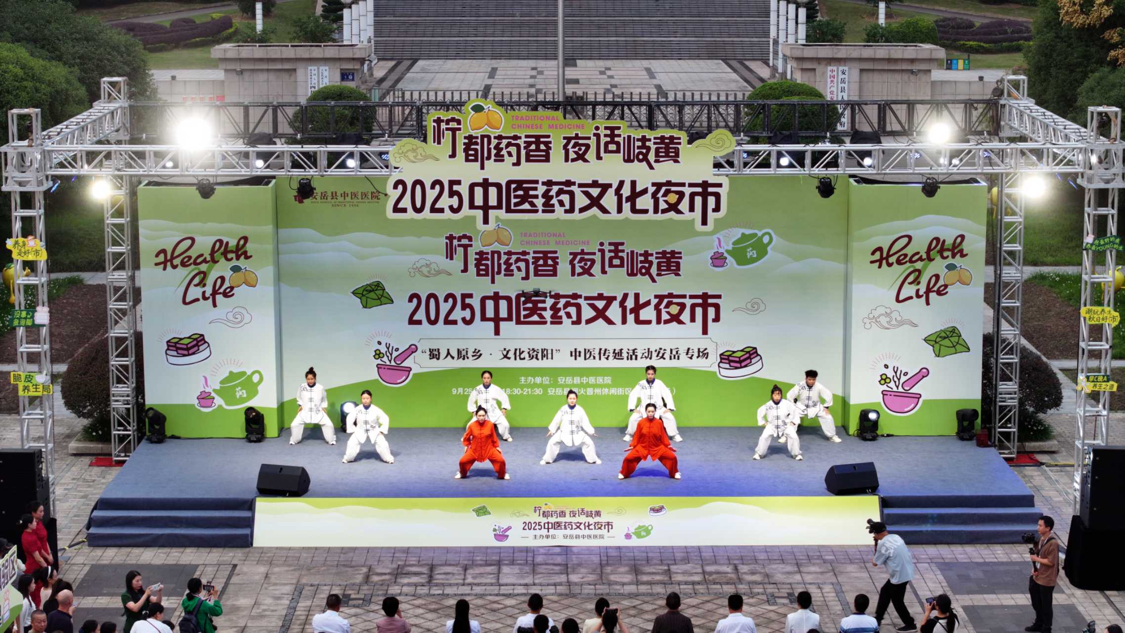 开市仪式前,一系列富含中医药文化元素的节目接连上演:舒缓身心的八段锦表演,让观众亲身感受中医导引术的独特魅力;安岳县中医医院院歌《与爱同行》的深情演唱,传递出医者仁心、服务群众的温度与力量;刚柔相济的太极拳表演,展现出传统功法对身心和谐的深层滋养;舞蹈《传奇中医》则以艺术化的语言,生动演绎了中医药的千年传承与文化精髓。