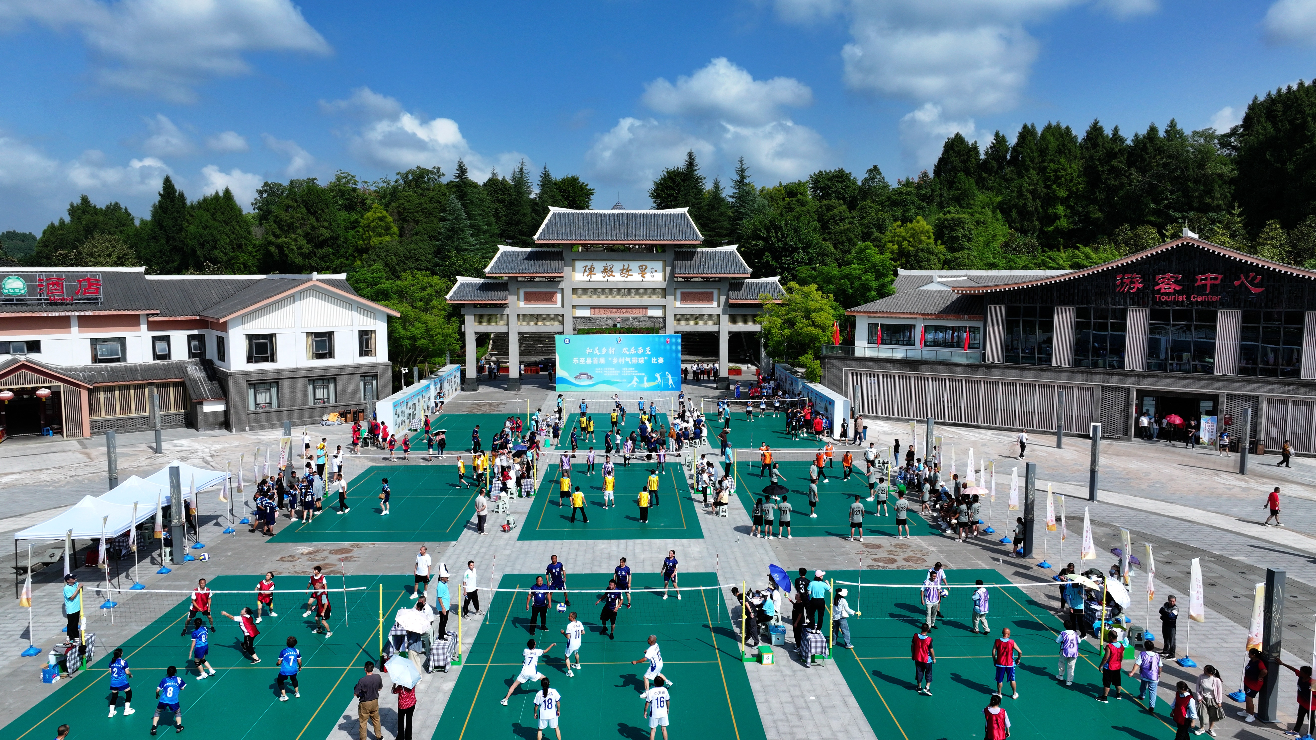 9月24日,陈毅故里景区德胜广场彩旗飘扬、人声鼎沸,由乐至县委、县政府主办的首届“乡村气排球”比赛在此拉开帷幕。来自全县各乡镇(街道)的63支代表队、540余名选手齐聚赛场,用跃动的身影勾勒出乡村体育的鲜活图景。
