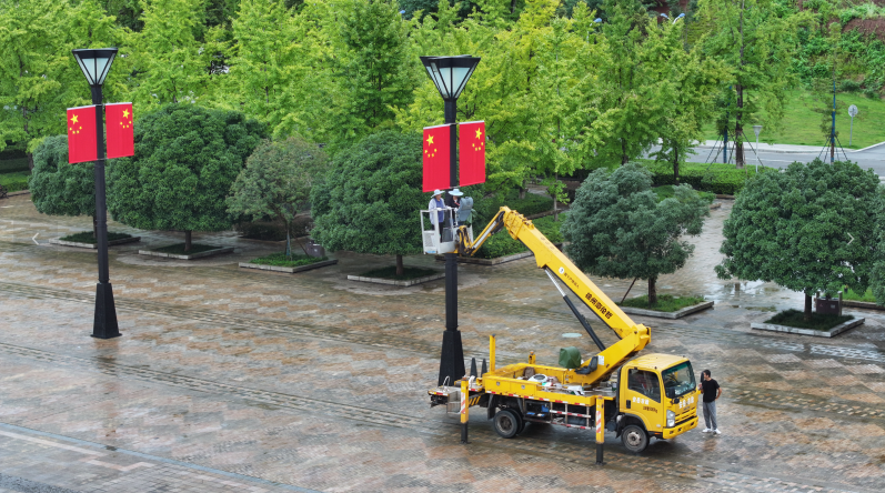 近日,记者漫步安岳大道,映入眼帘的是一派繁忙而有序的景象。工作人员正小心翼翼地将一面面崭新的国旗安装在路灯杆上。“我们采用抱箍搭配全包围橡胶垫圈的方式,既确保安装牢固,又能保护灯杆漆面,让每一面国旗都能以最昂扬的姿态展现在市民面前。”现场工作人员介绍道。