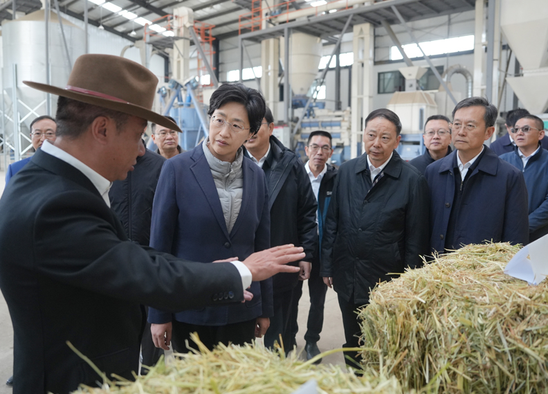 省委副书记、省长施小琳在德格县马尼干戈镇饲草现代农业园区,调研饲草产业链“产、供、销”一体化发展情况。