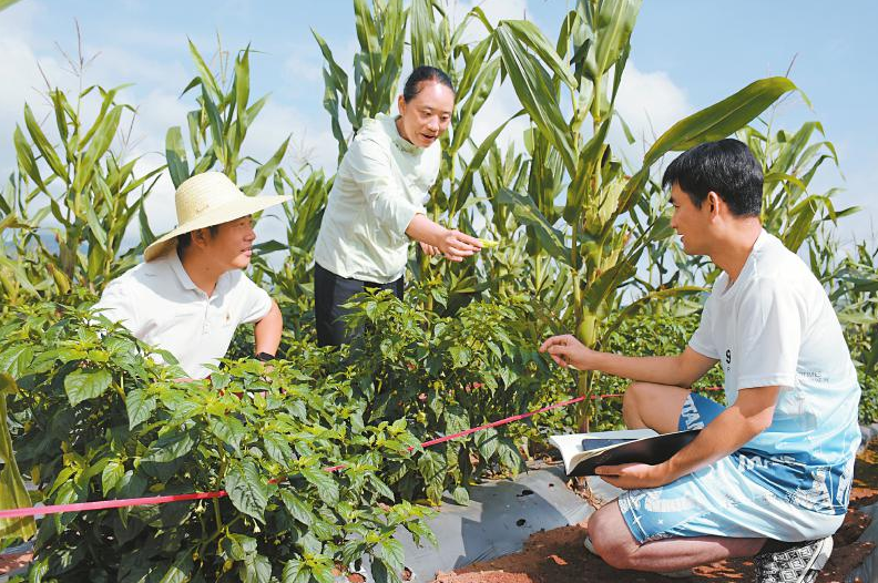 龙马潭区结对帮扶工作队队员在普格县查看辣椒长势。龙马潭区结对帮扶工作队供图(资料图片)