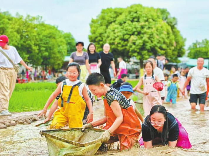 稻田抓鱼趣味活动。