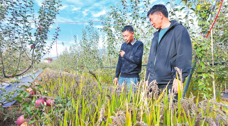 苹果树下长出旱稻