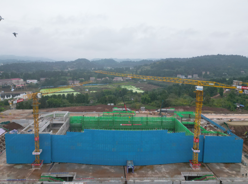 成渝中线高铁安岳站顺利完成主体混凝土结构封顶。赵彩萍/摄