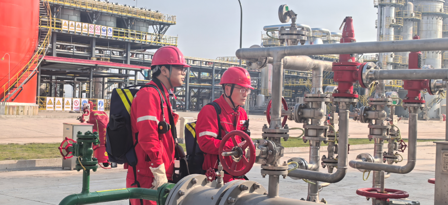 智能化并未完全替代人工。在设备区,作业人员仍每日定期开展红外测温、超声波检测等巡检工作,结合智能运维平台推送的预警信息,实施“预防性维护+状态检修”。“日常巡检中,我们主要通过检测设备温度、压力、运行噪音以及压力表是否正常等方面来判断设备运行状况。”现场检修人员向记者介绍。这种“人机协同”模式使设备故障停机率下降超过40%,有效保障了装置的持续稳定运行。