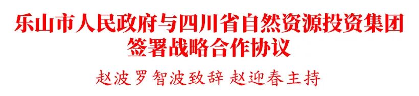11月26日,乐山市人民政府、四川省自然资源投资集团战略合作协议签署仪式在乐山举行。市委书记赵波,四川省自然资源投资集团党委书记、董事长罗智波出席并致辞。市委副书记、市长赵迎春主持。