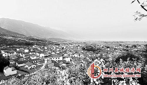 梨花掩映下的绵竹金花镇玄郎村新型社区。
