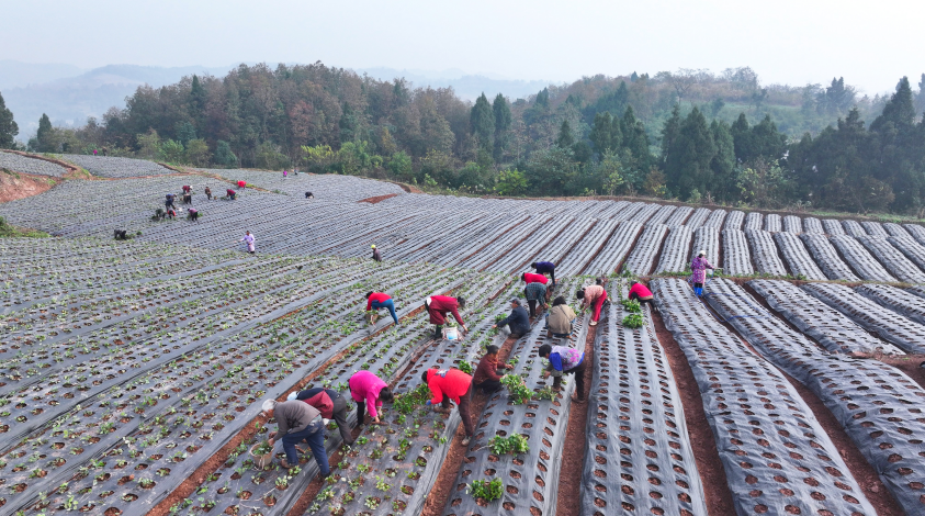 12月11日,记者走进安岳县合义乡的淫羊藿种植基地,冬日田间一片繁忙景象:50余名村民分散在土地上,正熟练地移栽一株株翠绿幼苗。翻飞的泥土间,洋溢着乡村振兴的勃勃生机。