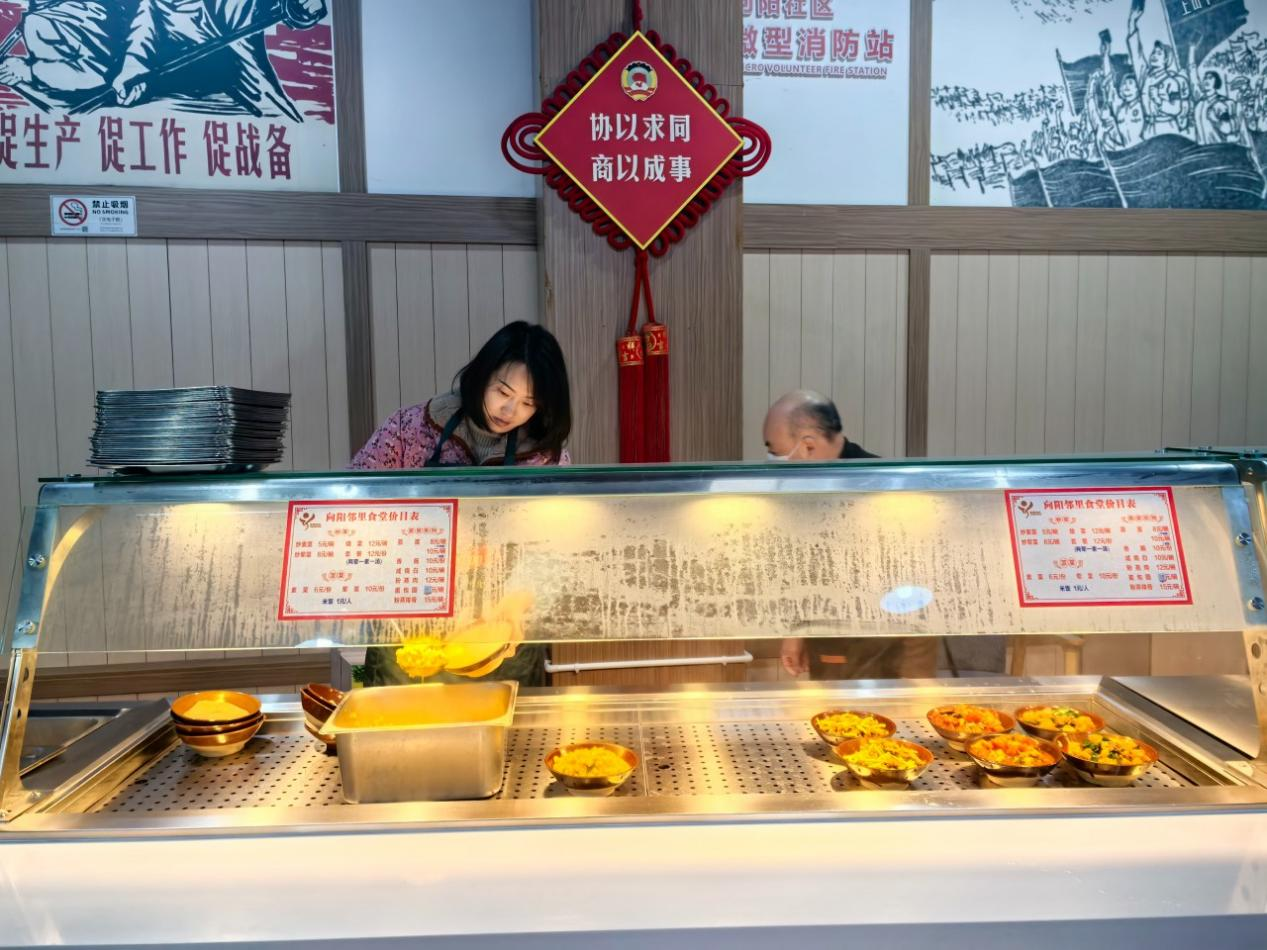 午餐时分,向阳社区食堂内人头攒动。餐台上,多种荤素搭配、热气腾腾的菜品整齐排开,素菜5元、荤菜8元、套餐12元……亲民的价格让这里成为了周边居民就餐的首选。