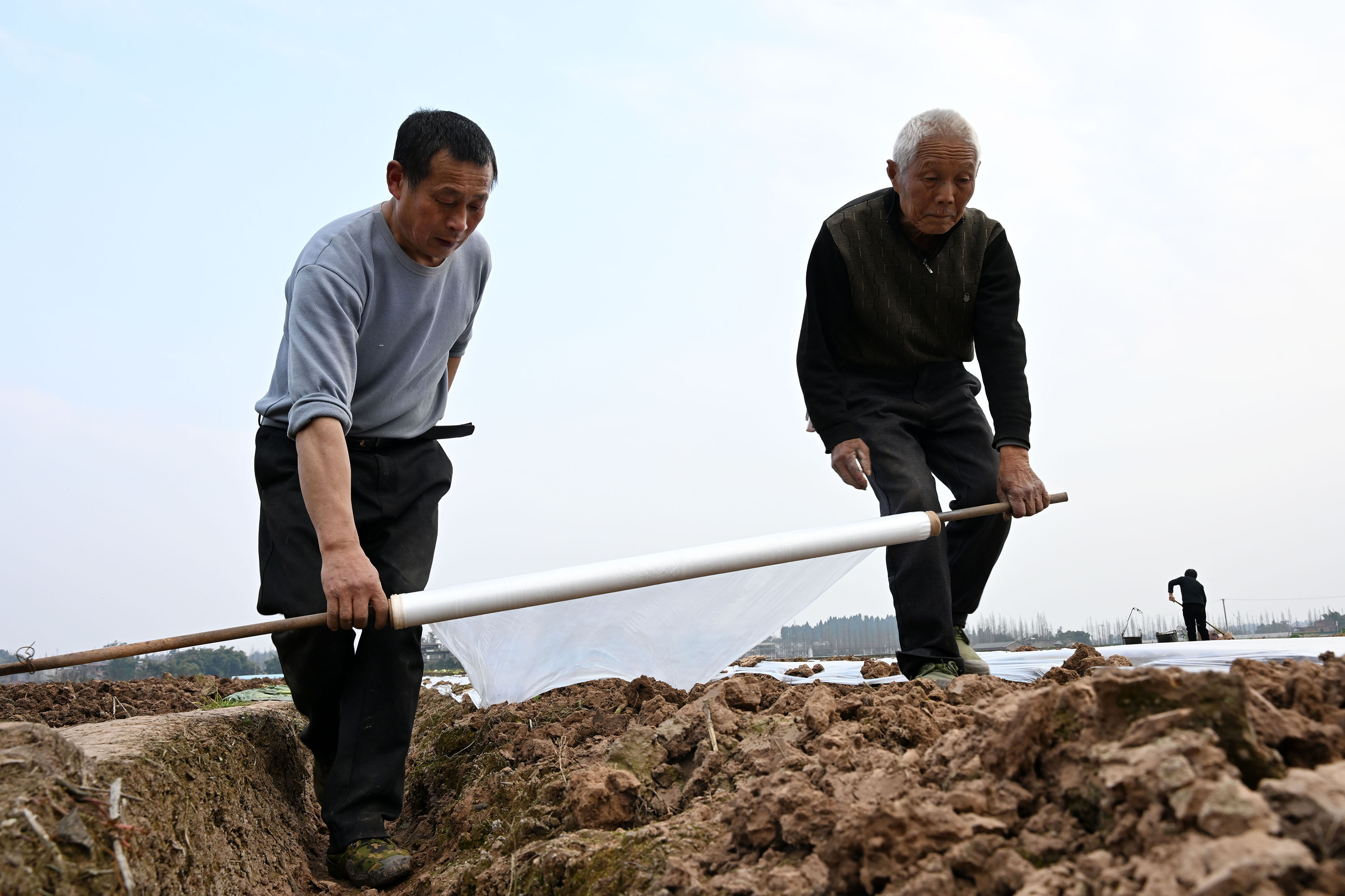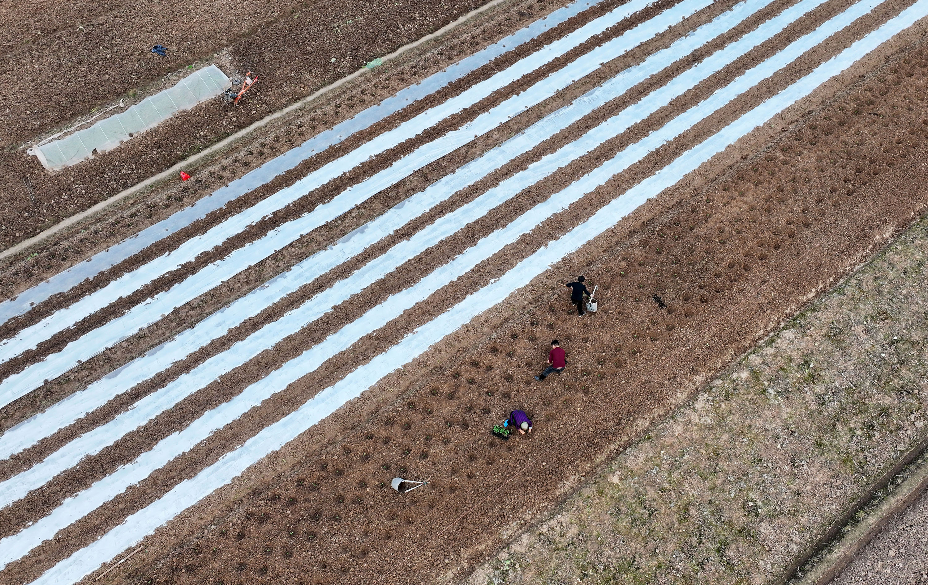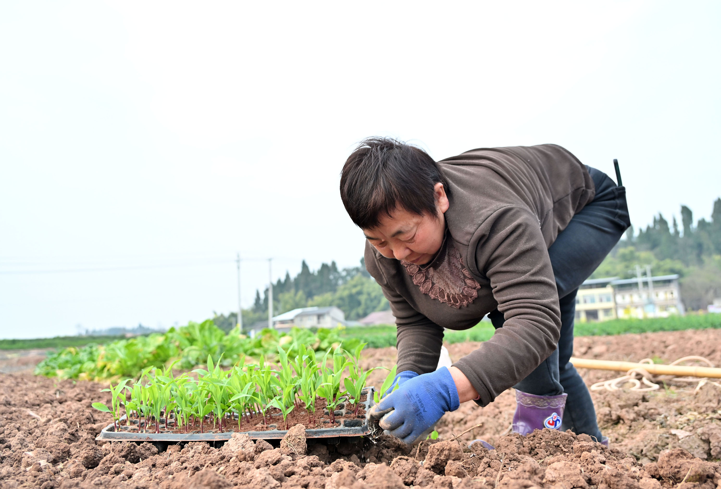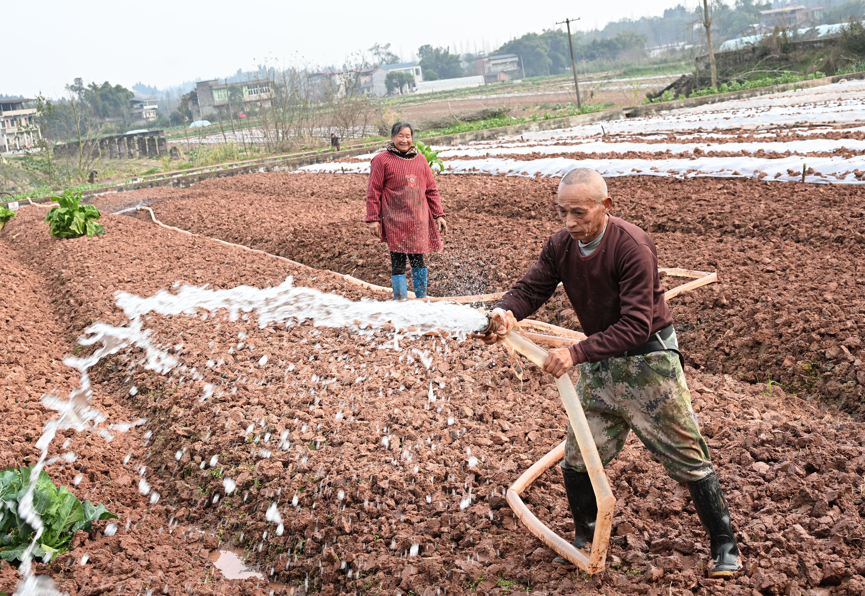 2026年2月4日,四川省内江市东兴区石子镇旱地坝村,当地村民抢抓时节移栽玉米苗
