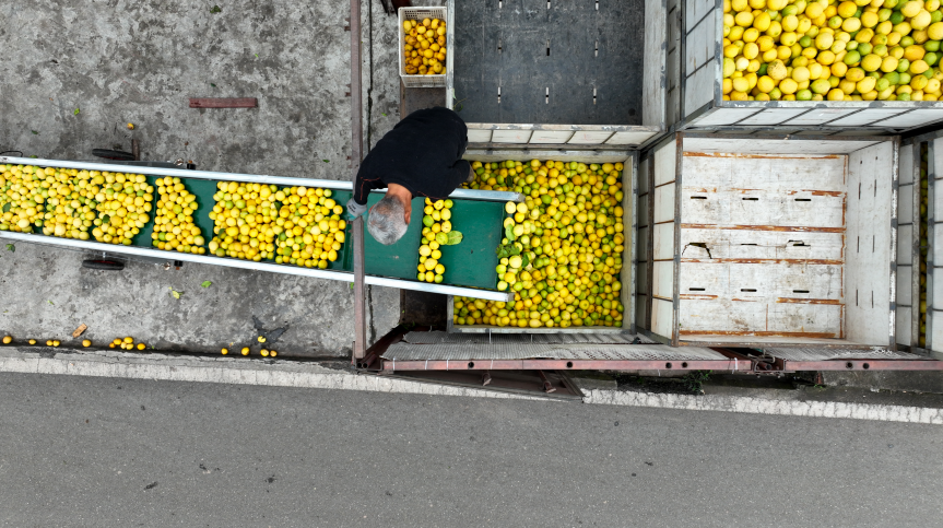 走进代市镇会龙村柠檬种植基地,清新浓郁的柠檬香气扑面而来、沁人心脾。采摘现场,数十名村民分散在林间,熟练地将成熟的青柠从枝头摘下,小心翼翼放入筐中,村民们的脸上满是丰收的喜悦。装车现场同样热闹繁忙,一筐筐新鲜采摘的青柠通过传送带整齐装上货车,用不了多久这批新鲜采摘的柠檬就将端上消费者的餐桌、走进深加工环节。