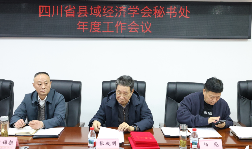 2026年2月10日下午,学会秘书处在成都召开年度工作会议。学会名誉会长、原省劳动和社会保障厅厅长张成明出席会议并讲话,省政协委员、学会副会长兼秘书长、当代县域经济杂志社社长杨彪主持会议。