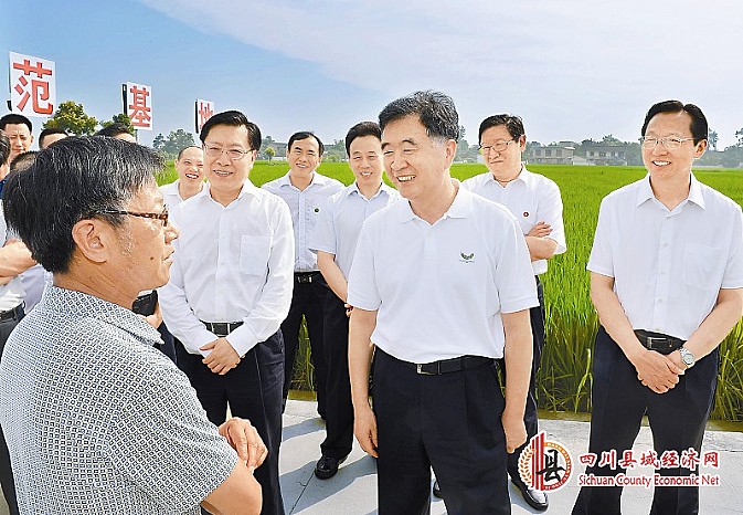 七月二十四日,出席全国加快转变农业发展方式现场会的中共中央政治局委员、国务院副总理汪洋在四川省委书记王东明,省委副书记、省长魏宏陪同下,到德阳广汉市连山镇锦花村四川现代粮食产业﹙广汉﹚示范基地调研。