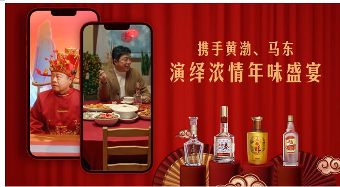 五粮液浓香酒携手“喜剧界最炙手可热的演员”黄渤和《一年一度喜剧大赛2》“会长”马东,推出年味欢乐短视频和贺岁大片;同步上线“码”力全开抖音挑战赛,让天南地北的年轻人晒出自家年味,全网曝光量累积超过11亿人次。