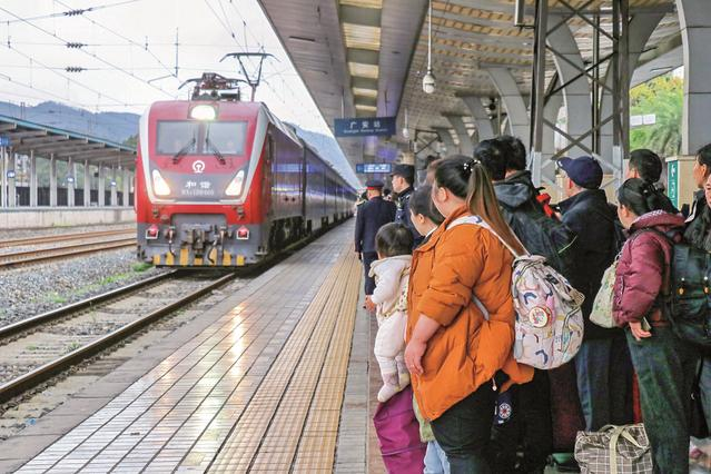 2月25日上午,396名广安籍外出务工人员在广安站有序登上了开往福州的返岗专列,免费搭乘4节专用车厢,开启新一年的务工之旅。