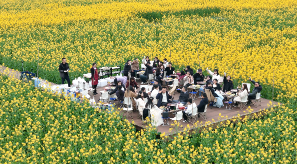 以花为媒、以景聚客,当地立足花海资源,深挖“花经济”潜力,推出汉服妆造、花田火锅等特色体验活动,完善打卡点、观光车等配套设施,联动周边文旅点位打造特色旅游线路,多渠道吸引游客。据统计,今年以来,海龙凯歌景区累计接待游客25.96万人次,带动周边村民人均增收8000余元,“赏花+”二次消费占比提升30%。
