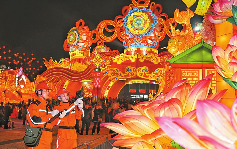 第32届自贡国际恐龙灯会期间,国网自贡供电公司安排工作人员驻点巡检,确保用电安全。 受访者供图
