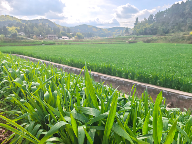 3月的乐至,春风正暖。走进资阳市乐至县石佛镇桂花园村,连片的麦田翻涌着翠绿的波浪,一株株小麦挺直了“腰杆”,叶片舒展,尽情沐浴着春光。放眼望去,仿佛给大地铺上了一层生机勃勃的绿毯,也铺开了人们对丰收的期盼。