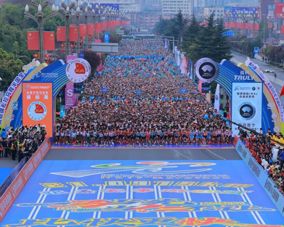 本届赛事由中国田径协会、四川省体育局、眉山市人民政府主办,既是世界田联白金标赛事,也是2026年唯一一场全国半程马拉松锦标赛。赛事预报名人数突破25.6万人,其中,省外超17万人。2万名参赛选手中,既有世界田联白金标运动员,也有国内马拉松赛事的“常胜将军”,眉山市内选手734人,市外选手1.9万人、占比超96%。