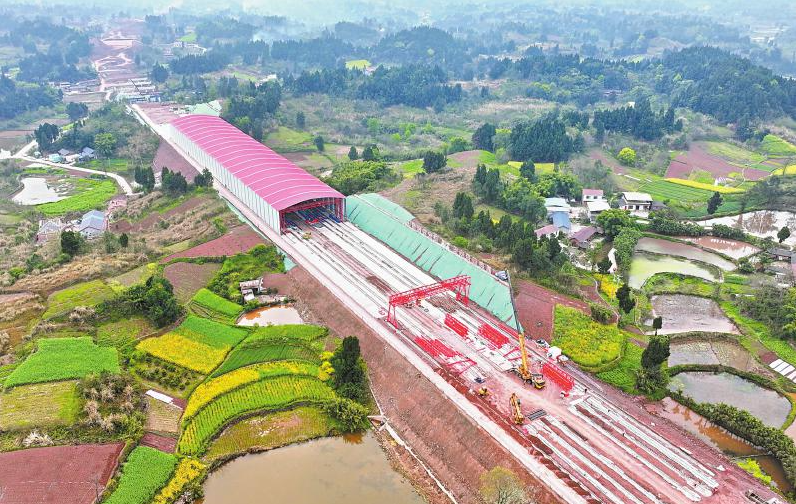 3月13日,内江市东兴区顺河镇境内的成渝高速扩容项目施工现场。 李建明 摄(C视觉)