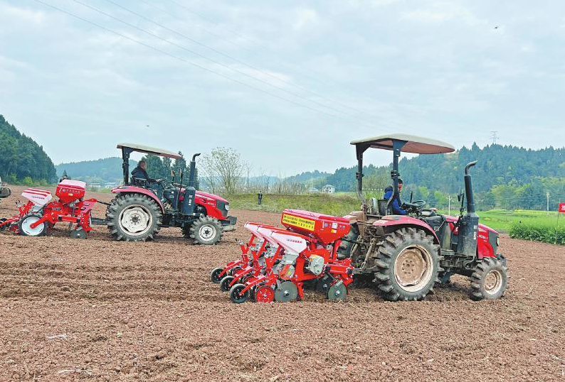 春好正是耕种时。3月20日,春分,遂宁市安居区石洞镇双祠堂村,一场田间“车展”在此进行——2026年四川丘陵山区春玉米机播现场会上,一块刚平整过的坡地上,几台拖拉机一字排开,牵引着不同型号、不同大小的播种机,等待来自四川各地的100多名玉米种植大户试驾。这些播种机靠啥吸睛?