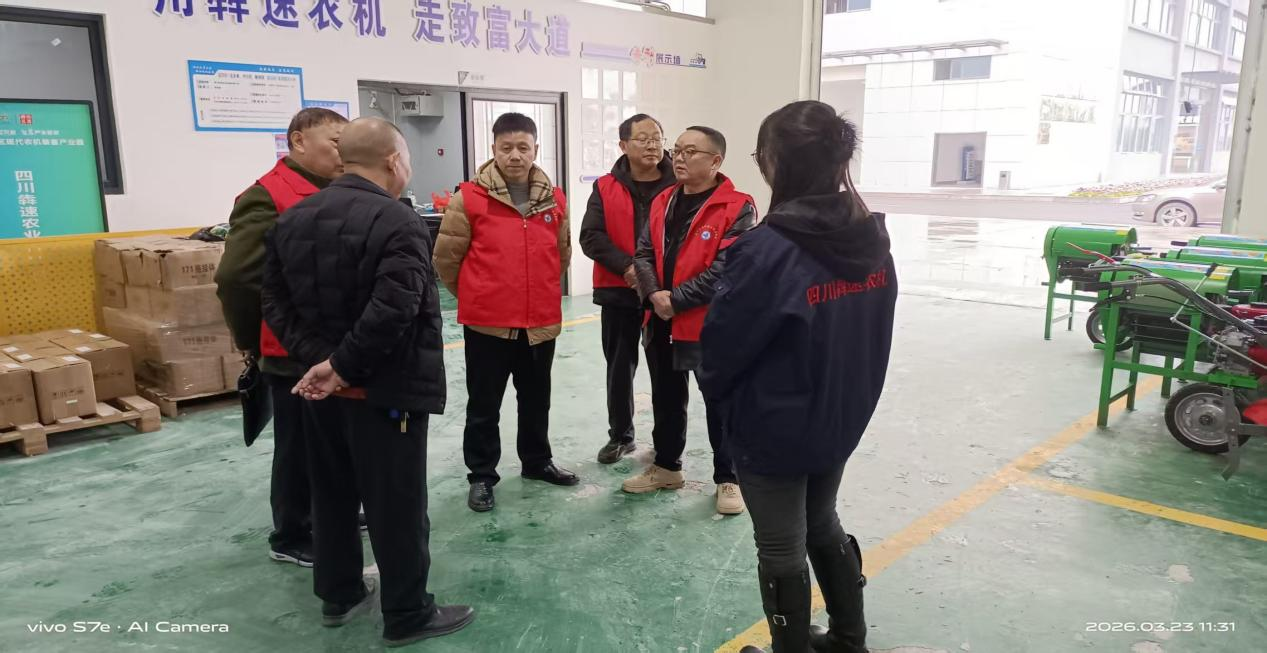 3月23日,达州市达川区老科技工作者协会组织4名老科技工作者深入达川区丘陵山区现代农机装备产业园,走进四川犇速农业机械有限公司围绕公司生产经营、技术创新、产品研发、商标注册、专利培育、品牌建设及市场拓展等方面展开专题调研,以银发智慧赋能园区农机企业发展,助力丘陵山区农业现代化建设。