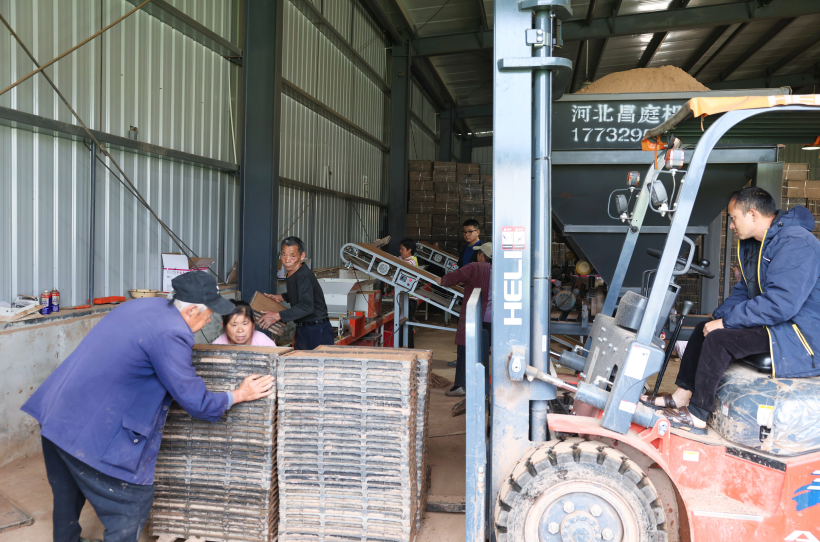工人正忙碌在水稻育秧流水线上。潘政吉 摄