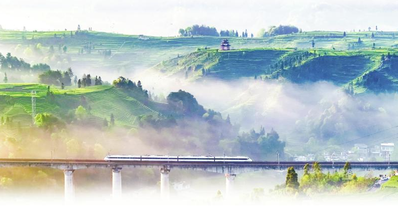 ●动车划开晨雾,驶入万亩茶田,如同走进“千里江山图”
