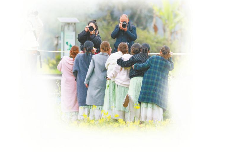 游客在天全县“红色粮仓”油菜花田打卡。本组图片均由黄刚拍摄