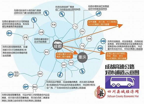 想在秋凉时节赶到阳澄湖吃蟹?也可以。成都将利用成渝高速、成安渝高速、成南接渝遂高速、新机场高速接成安渝高速或成渝高速等4条高速快速连接重庆,并经重庆形成至华中、华东的高速公路通道。