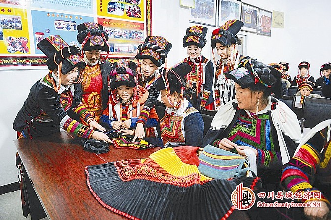 在实施精准扶贫工作中,峨边充分利用彝区妇女从小就喜欢刺绣的特长,在彝族集居的乡镇大力开展彝族刺绣培训班,发展刺绣产业。有6000余名彝族妇女参与手工刺绣行业,部分彝族妇女年收入达到3万至10万元。(记者 肖雨杨摄)