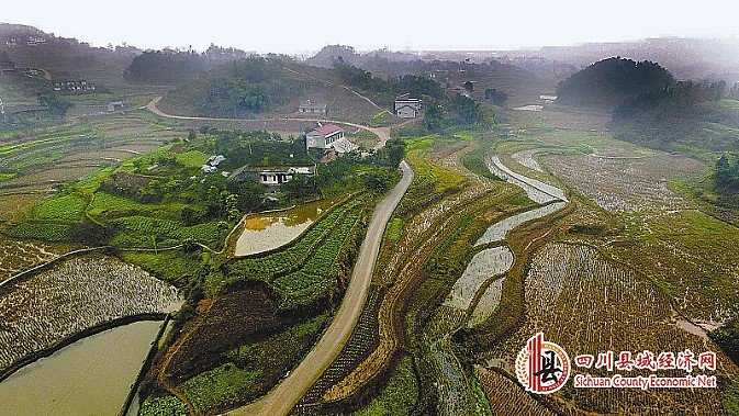 2015年,省级建卡贫困村——江安县怡乐镇青龙村硬化通村公路修通,为当地发展注入新活力。2015年江安县扎实推进脱贫攻坚,实现4969户贫困户脱贫,3个贫困村“摘帽”。图为1月8日,记者拍摄的青龙村通村公路。 记者 何海洋 摄(航拍四川供图)