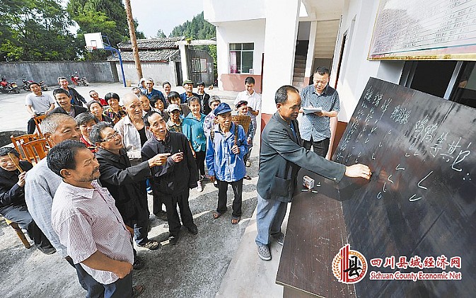 苍溪县新观乡向阳村村民在黑板上选择自己想发展的产业,扶贫“自助餐”更好地调动了他们的积极性。