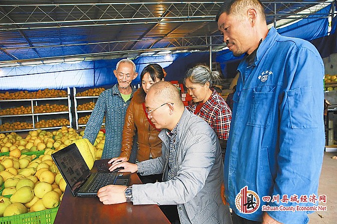 广安市广安区大龙乡战斗村“第一书记”张科在网上帮助农民发布广安红柚销售信息,解决滞销难题。