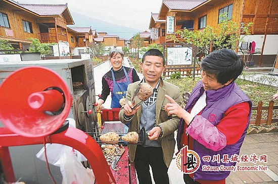 芦山县龙门乡新村的火锅店老板邓主文买来一台烤红薯机,做起烤红薯的副业。(记者 肖雨杨摄)